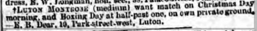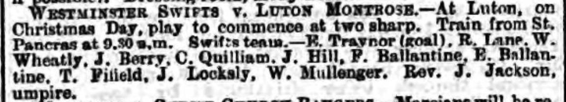The Luton Montrose game with Westminster swifts was advertised in the Sporting Life, 22nd December
