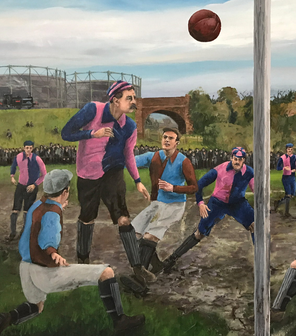 The “Play up Luton” cards in the supporters hats is the first reference to favours being worn by the people of Strawopolis. Wardown Park Museum has one of J.W. Julian from 1892-94, below