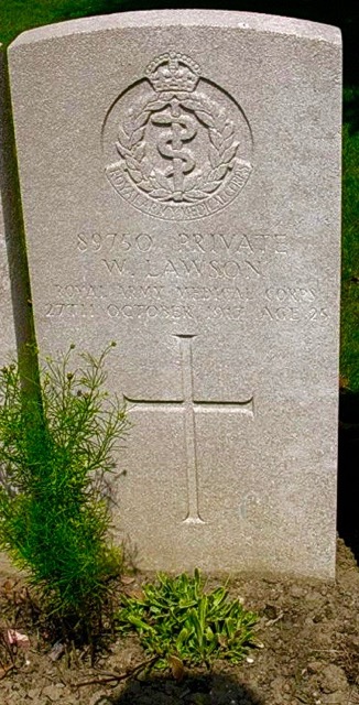 “Regret inform you Pte. W. Lawson. R.A.M.C., reported 27th Oct, dangerously ill 3rd Canadian Casualty Clearing Station, France. Gunshot wound thigh, fracture left thigh bone. Regret permission visit him cannot be granted.”