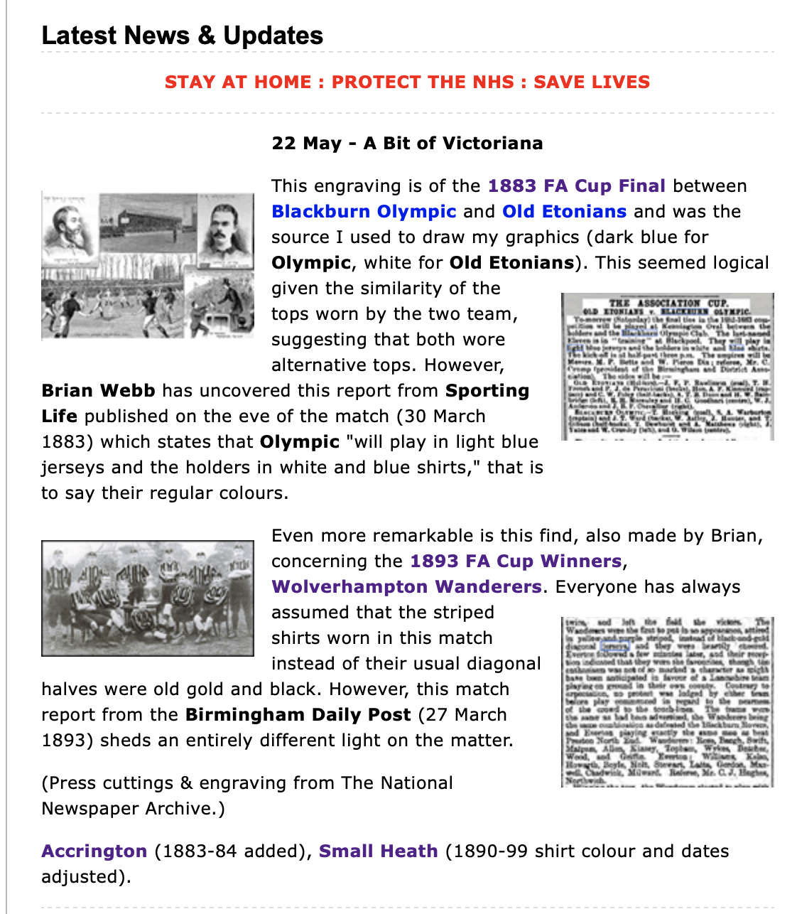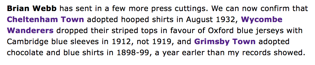 During the course of my research I have come across information about other clubs as the following clips from the Historical Kits site show;